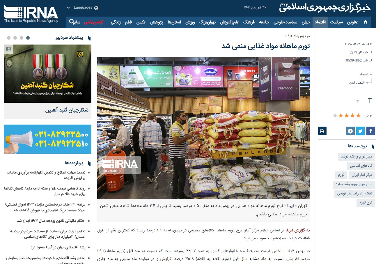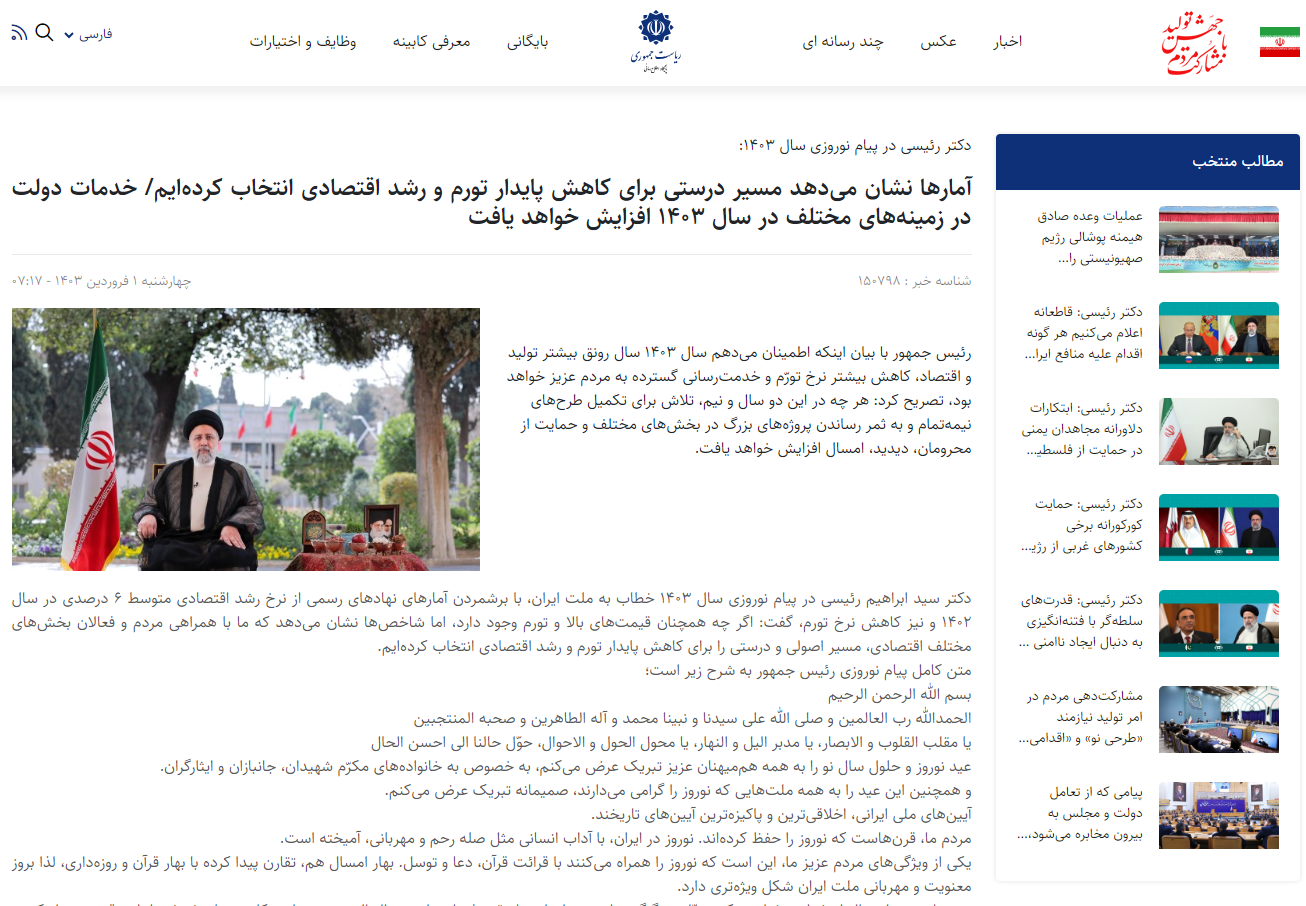در زیر چند نمونه از اخبار منتشر شده در سایتهای وابسته به حکومت در مورد رشد اقتصادی و کاهش تورم را ببینید.